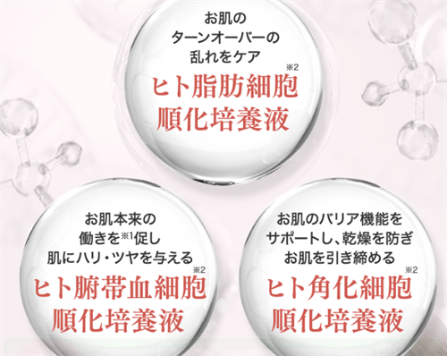 ヒト幹細胞培養液は、肌の細胞を活性化し、若々しい肌を保つための重要な成分です。