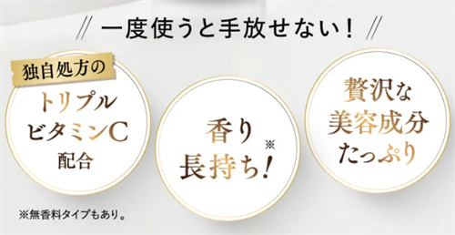 独自のトリプルビタミンC処方と6種のジャムウ成分配合により、においや黒ずみ、乾燥などの悩みを解消します。