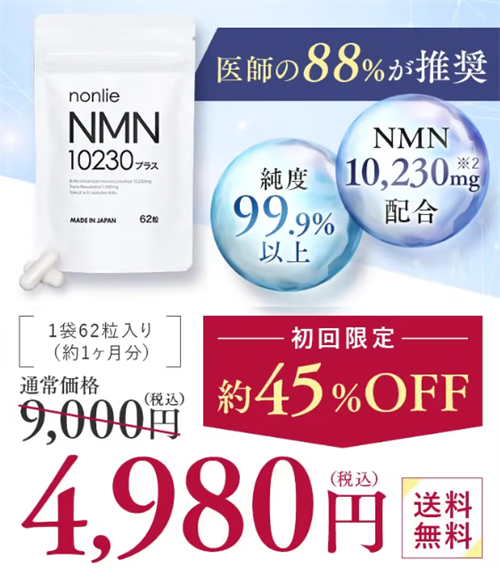 nonlie(ノンリ)NMN10230プラスは、信頼性と効果を兼ね備えたエイジングケアサプリメントとして、試してみる価値があります。