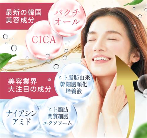「ヒト脂肪間質細胞エクソソーム」「ナイアシンアミド」「パクチオール」「CICA」「ヒト幹細胞培養液」美容業界でも注目されている成分です。