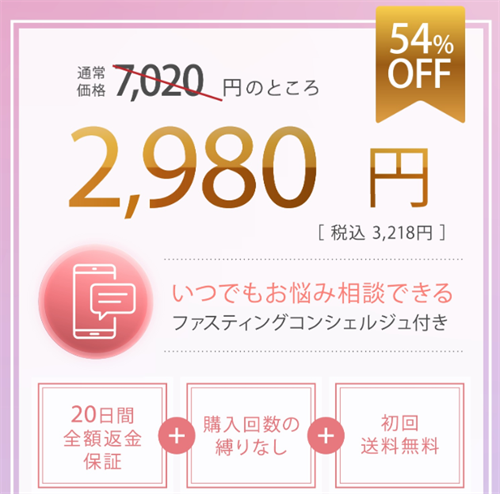 初回54%OFF・返金保証付きで始めやすいファスティングキットの魅力や特徴も紹介。