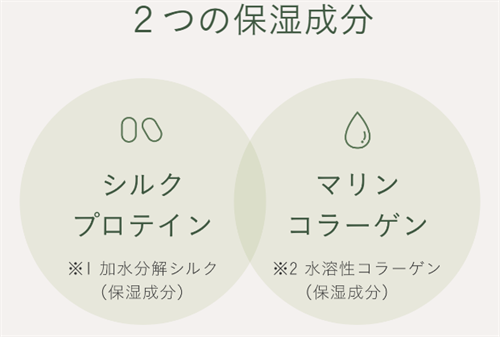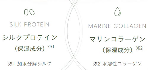 シルクプロテインとマリンコラーゲンが長時間保湿効果を発揮します。
