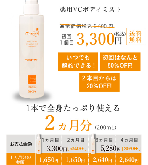 シーボディ 薬用VCボディミストの定期便を利用すると、2本目以降もお得な価格で購入できます。